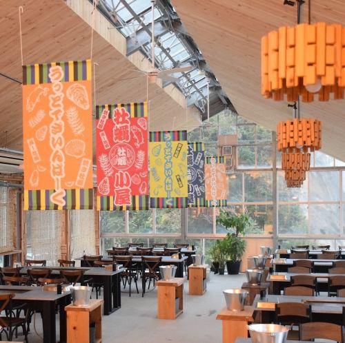 広々としたおしゃれな空間で、屋内ながらも開放的な牡蠣小屋です。